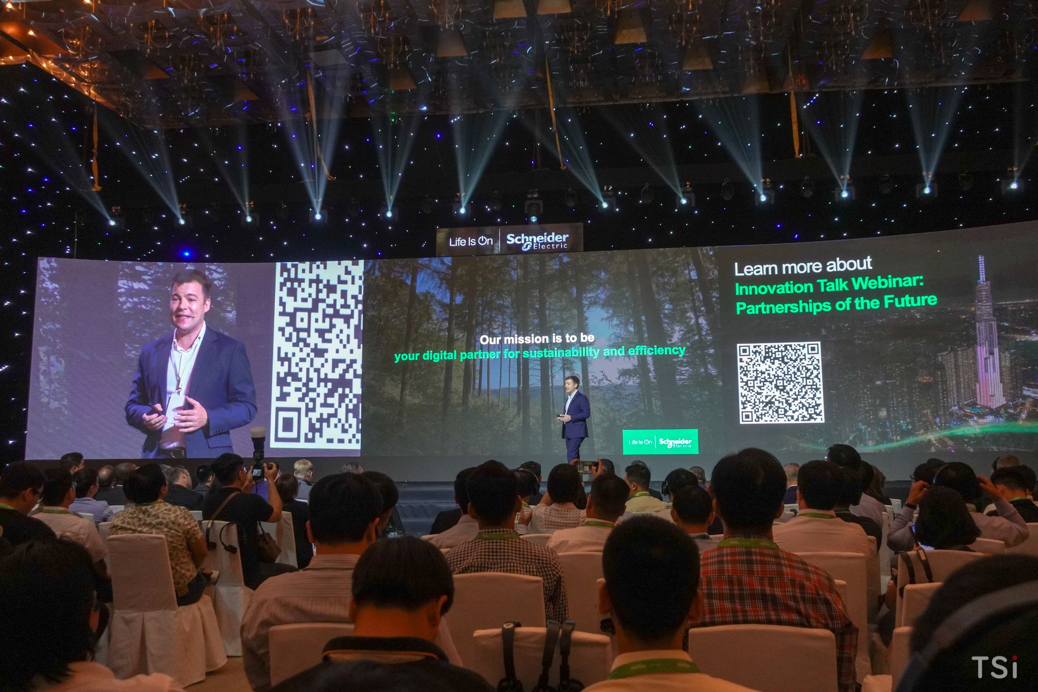 Ông Romaric Ernst, Phó Chủ tịch Marketing & Phát triển Kinh doanh, Schneider Electric Khu vực Đông Á & Nhật Bản, cũng nhấn mạnh tại sự kiện về sự hợp tác giữa các doanh nghiệp và chính phủ để đạt được mục tiêu chung. Cuộc khủng hoảng năng lượng hiện nay đang kéo theo chi phí cao hơn trên nguồn cung hữu hạn. Do đó, ông kêu gọi các doanh nghiệp tích cực thảo luận giải pháp để gia tăng năng lực cạnh tranh trong môi trường kinh doanh khắc nghiệt, đồng thời hành động nhanh để kiến tạo nên một thế giới bền vững hơn bằng các công nghệ sẵn có.