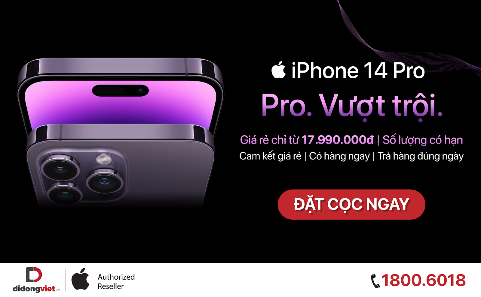Giá bán chính thức của iPhone 14 series với những ưu đãi khi đặt cọc tại hệ thống Di Động Việt, gồm iPhone 14 chỉ còn từ 17,99 triệu đồng, iPhone 14 Plus chỉ còn từ 20,99 triệu đồng, iPhone 14 Pro chỉ còn từ 27,99 triệu đồng, iPhone 14 Pro Max chỉ còn từ 30,99 triệu đồng (được biết giá này đã trừ hết tất cả ưu đãi và có giới hạn).