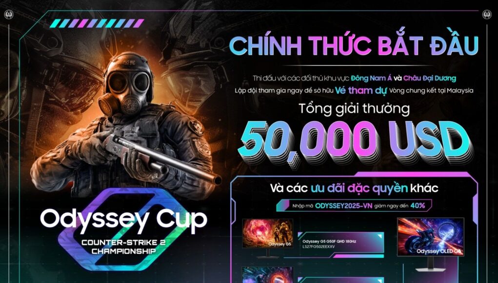 Hãy sẵn sàng cho 3 tháng bùng nổ cùng Counter-Strike 2 khi Odyssey Cup 2025 quy tụ những đội tuyển xuất sắc nhất trong khu vực. Toàn bộ diễn biến giải đấu sẽ được phát sóng trực tiếp trên các kênh Youtube chính thức của Samsung Việt Nam, khép lại bằng vòng chung kết hoành tráng tại Kuala Lumpur – nơi các đội tham dự sẽ được tài trợ toàn bộ chi phí.
