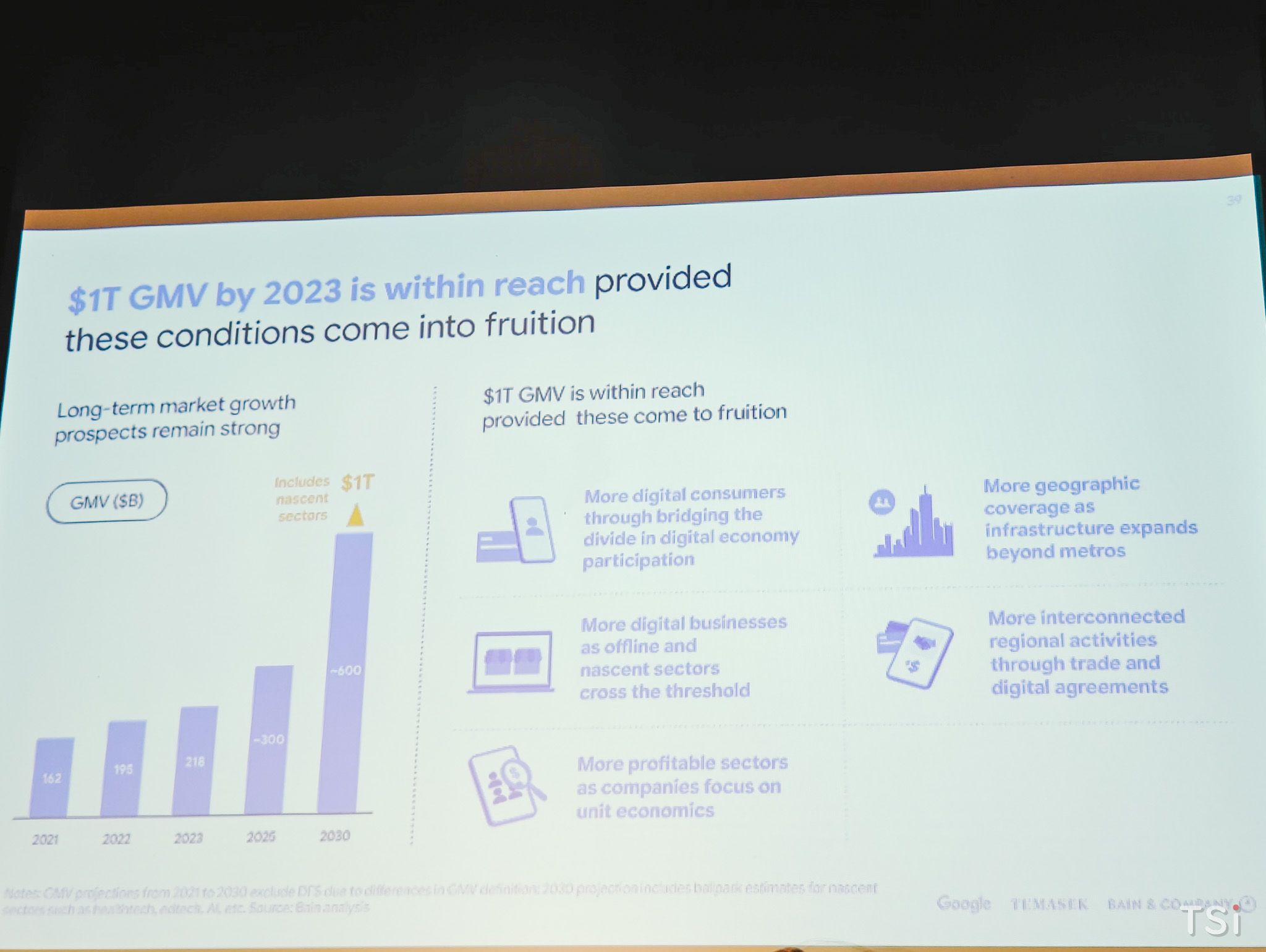 Bất chấp những biến động của nền kinh tế vĩ mô toàn cầu, báo cáo cho thấy tổng giá trị hàng hóa (GMV) của khu vực vẫn tiếp tục tăng và dự kiến đạt 218 tỷ USD, tăng 11% so với cùng kỳ năm ngoái (YoY). Báo cáo cũng cho thấy doanh thu từ nền kinh tế kỹ thuật số của khu vực Đông Nam Á có triển vọng đạt mức 100 tỷ USD trong năm nay.