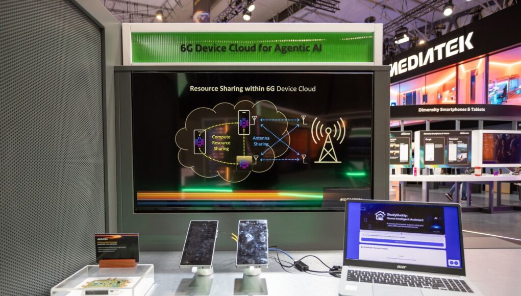 Điểm nổi bật trong gian hàng triển lãm của MediaTek tại MWC 2026 chính là vai trò dẫn đầu trong việc phát triển công nghệ 6G. Là đơn vị tiên phong thúc đẩy các tiêu chuẩn 6G, MediaTek trình diễn khả năng tương tác vô tuyến 6G đầu tiên trên thế giới, giúp tối ưu hóa băng thông, độ trễ và tối ưu hoá năng lượng, đồng thời tạo nền tảng hỗ trợ vững chắc cho các dịch vụ AI tạo sinh và AI tác nhân.