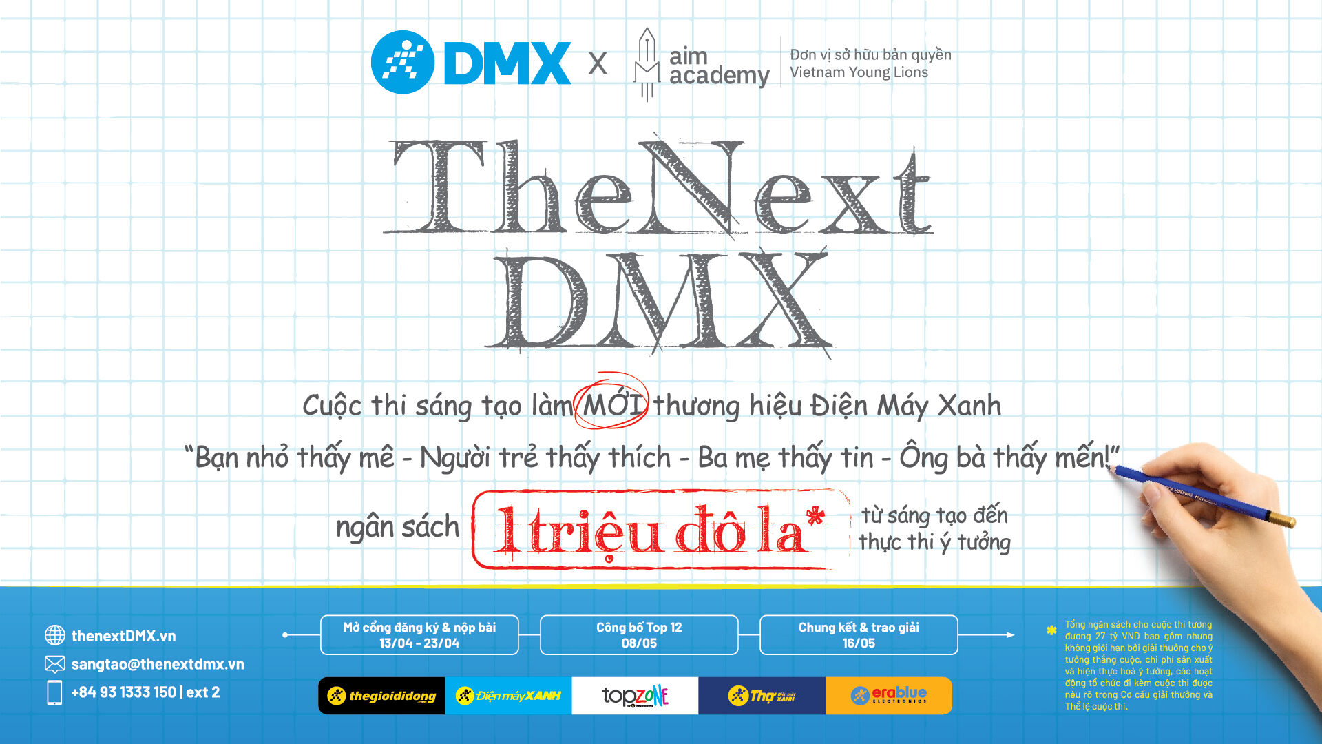Với tên gọi chính thức Cuộc thi “The Next DMX”, đây là lời mời nghiêm túc gửi đến cộng đồng: Hãy cùng Điện máy Xanh viết tiếp chương hoàn toàn mới cho một thương hiệu vốn đã quen thuộc.