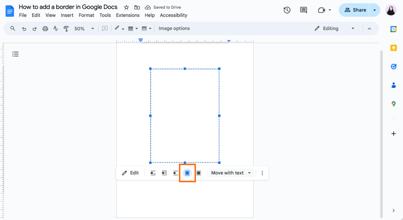 Tạo viền bằng công cụ vẽ hình của Google Docs