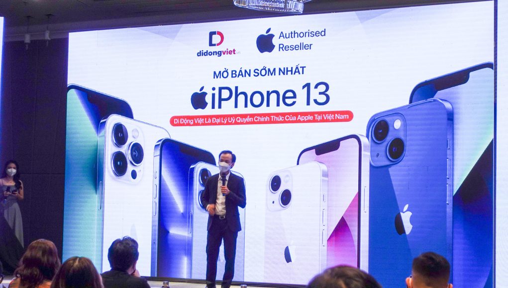 Hệ thống bán lẻ Di Động Việt đã tổ chức buổi công bố ra mắt iPhone 13 VN/A chỉ vài tiếng trước thời điểm giao máy (0 giờ ngày 22.10).