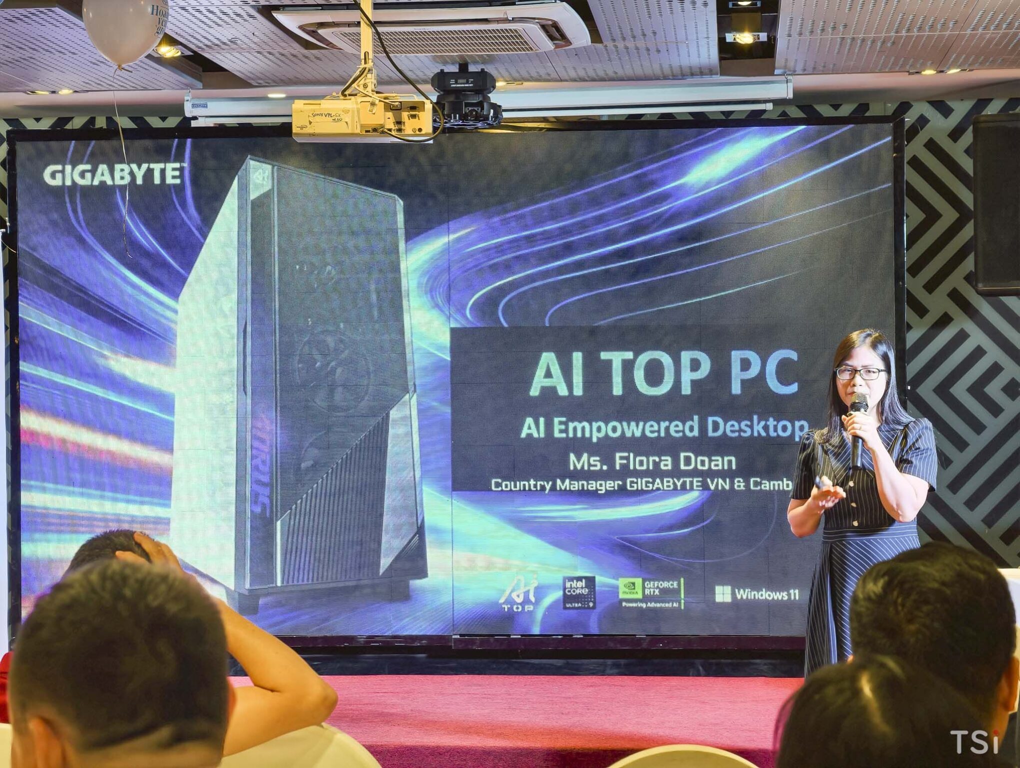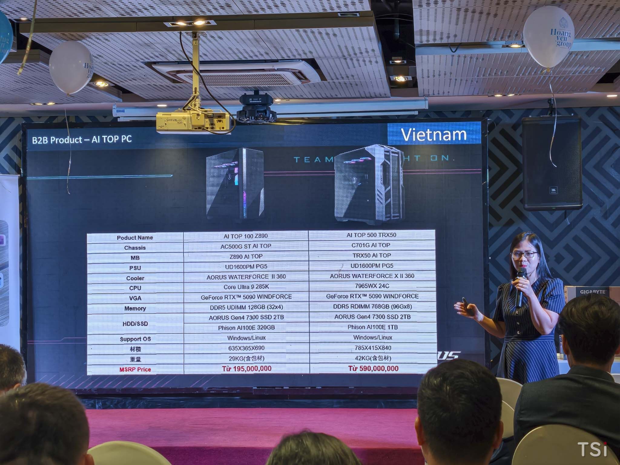Tiếp nối chương trình, đại diện GIGABYTE – chị Flora – đã chia sẻ chi tiết về hệ sinh thái giải pháp phần cứng AI, mở rộng không chỉ trên laptop mà còn trên các nền tảng máy bộ hiệu năng cao: