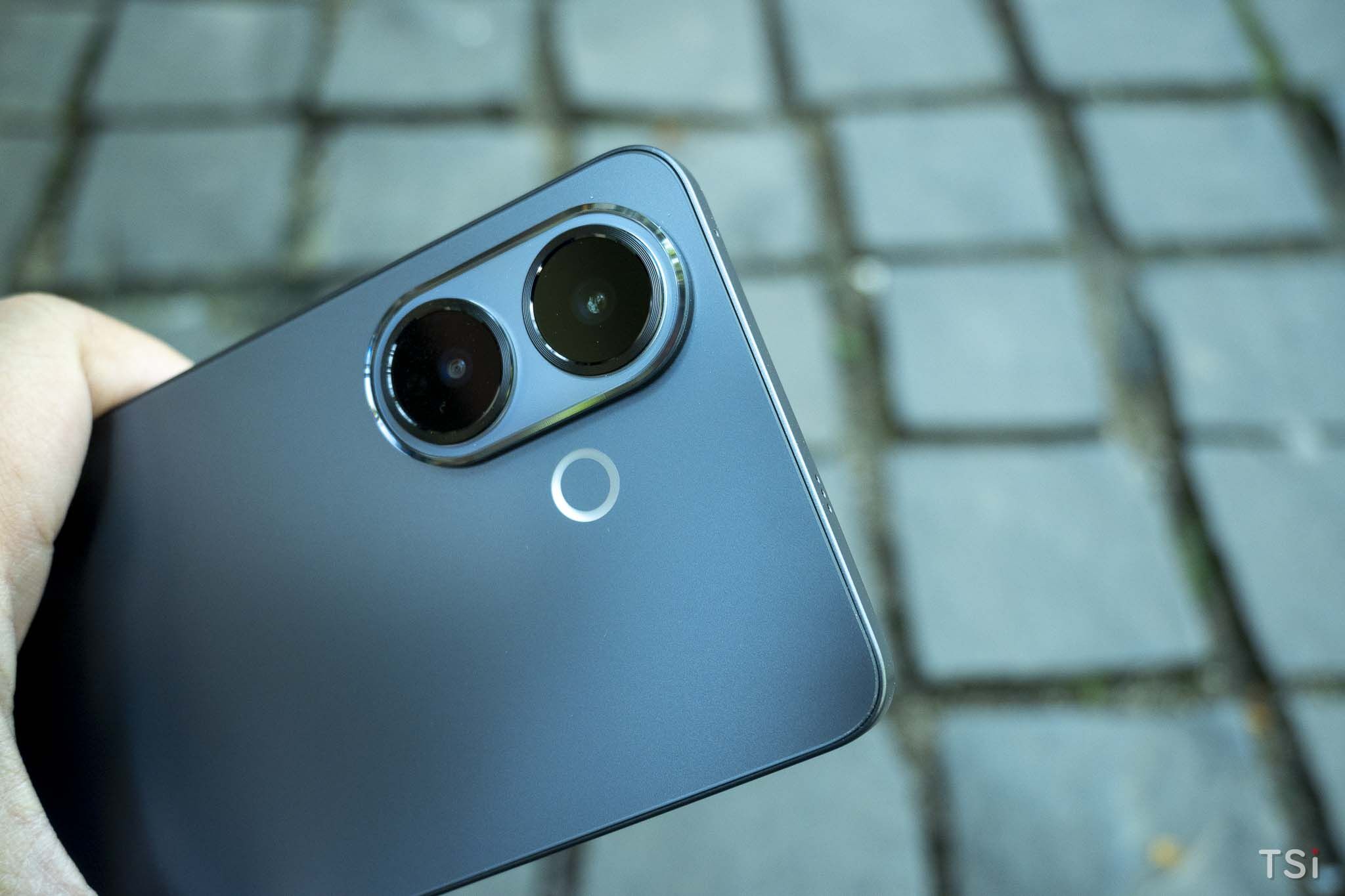 Mặt lưng máy là cụm 2 camera được đặt trong module có hình viên thuốc con nhộng với camera chính 50MP và camera góc siêu rộng đạt 8MP. Vì không có camera tele nên máy chỉ hỗ trợ zoom số từ camera chính. Đèn Flash được thiết kế dạng tròn và đặt bên cạnh cụm camera. Máy bố trí 2 nút tăng giảm âm lượng và nút nguồn ở cạnh phải, phía cạnh dưới là loa ngoài, cổng Type-C cho sạc và truyền dữ liệu, cuối cùng là khe cắm SIM và micro thoại.