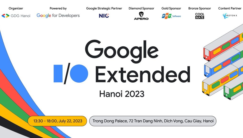 Google I/O Extended Hanoi 2023 – sự kiện mở rộng từ Google I/O tại Mỹ, được tổ chức bởi cộng đồng Google Developer Group Hanoi (GDG Hanoi) vào mùa hè mỗi năm, dành cho những người yêu thích công nghệ tại Hà Nội.