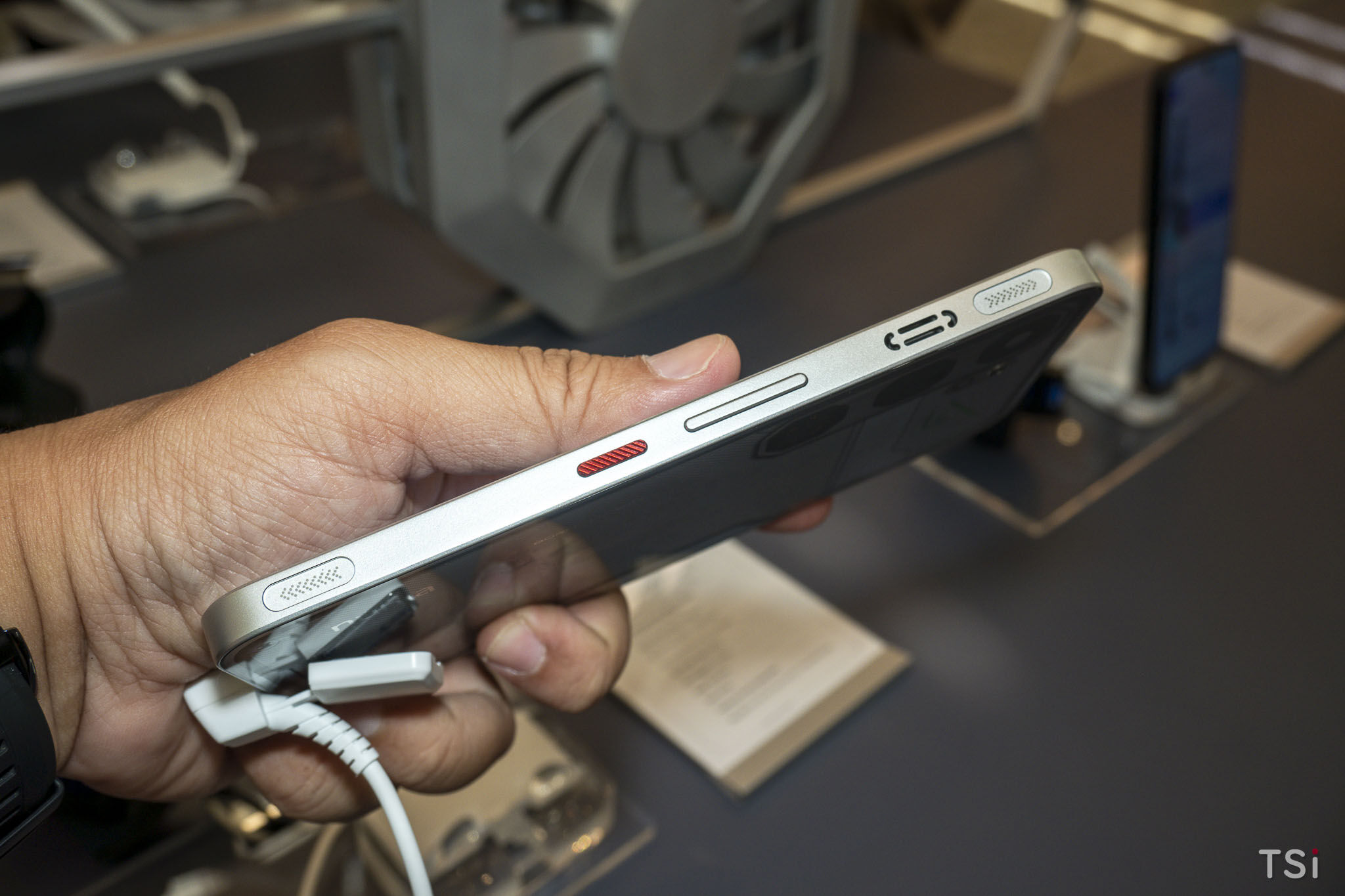 Trọng tâm của model này còn đến từ hệ thống tản nhiệt mang cảm hứng REDMAGIC, nơi quạt làm mát chủ động được đặt bên trong thân máy, kết hợp cùng đường dẫn khí tối ưu để luồng gió đi trực tiếp đến các khu vực sinh nhiệt lớn như CPU và pin.