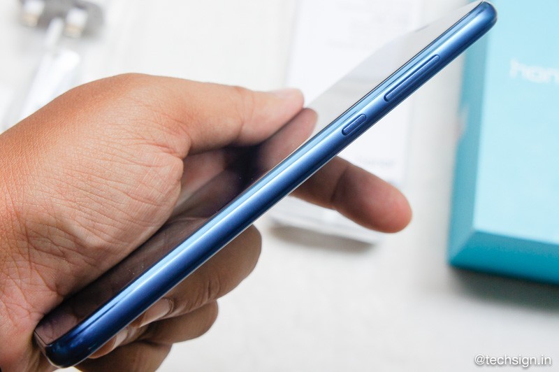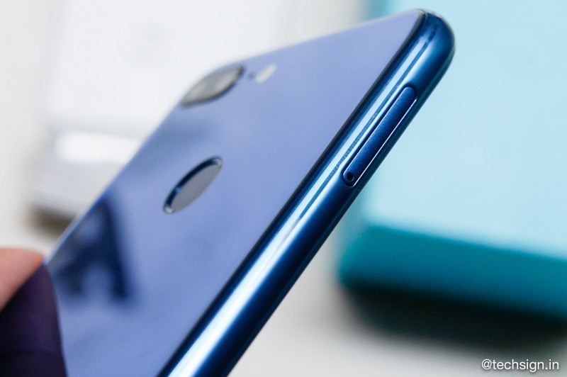 Có thể nói Honor 9 Lite là một chiếc điện thoại mà khi cầm cân so về cấu hình và tính năng thì sẽ được lòng khá nhiều bạn trẻ. Cụ thể là máy sở hữu đến 4 camera (2 trước, 2 sau), camera sau lồi không đáng kể, song song đó là mặt trước và sau đều bằng kính, phiên bản mình có dịp trải nghiệm có màu xanh Sapphire nổi bật.