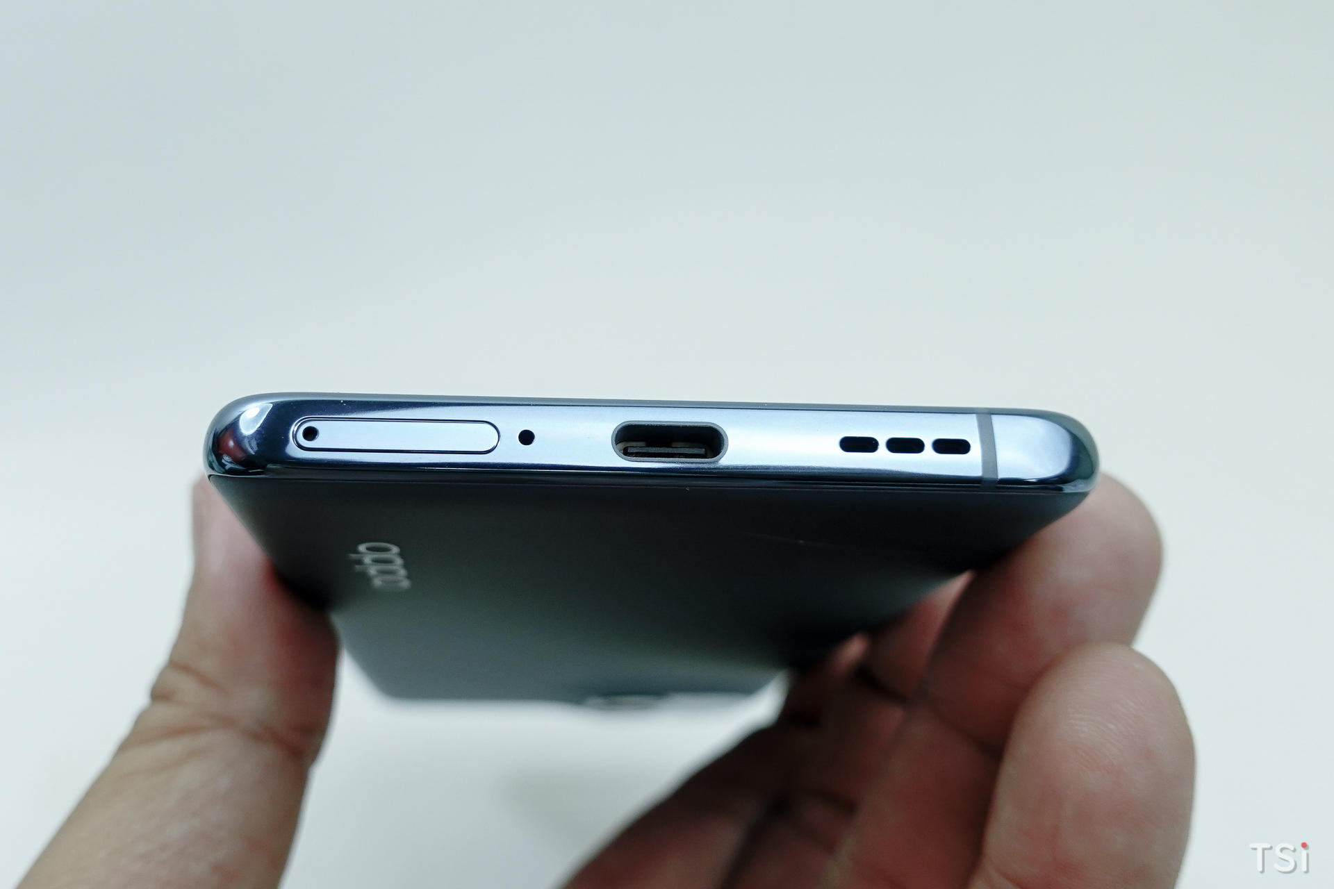 Với các nút và cổng kết nối, OPPO Find X3 Pro 5G bố trí nút nguồn ở cạnh phải, khay dual SIM cùng loa ngoài và cổng USB Type-C ở cạnh dưới, trong khi nút tăng giảm âm lượng ở cạnh trái.