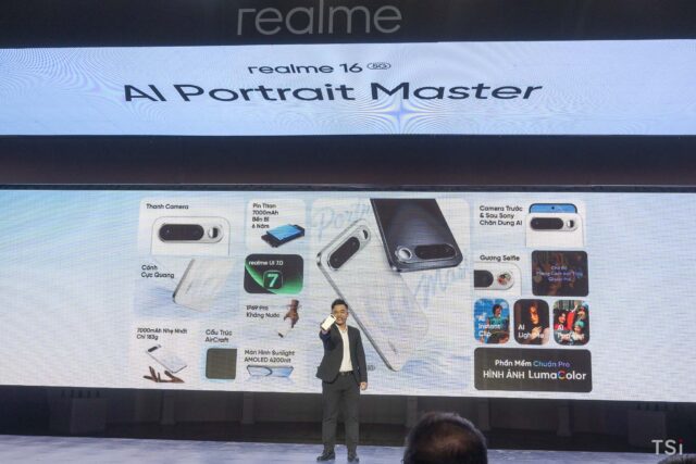 Tại sự kiện, realme Việt Nam cũng chính thức giới thiệu realme 16 5G smartphone được định vị là “Bậc Thầy Chân Dung Al”, với thiết kế thanh camera ngang chuẩn flagship lần đầu xuất hiện trong phân khúc, realme 16 5G không chỉ định hình diện mạo cao cấp mà còn kiến tạo sự cân bằng trong từng đường nét, mang lại cảm giác cầm nắm dễ chịu cho nhu cầu sử dụng linh hoạt suốt cả ngày dài.