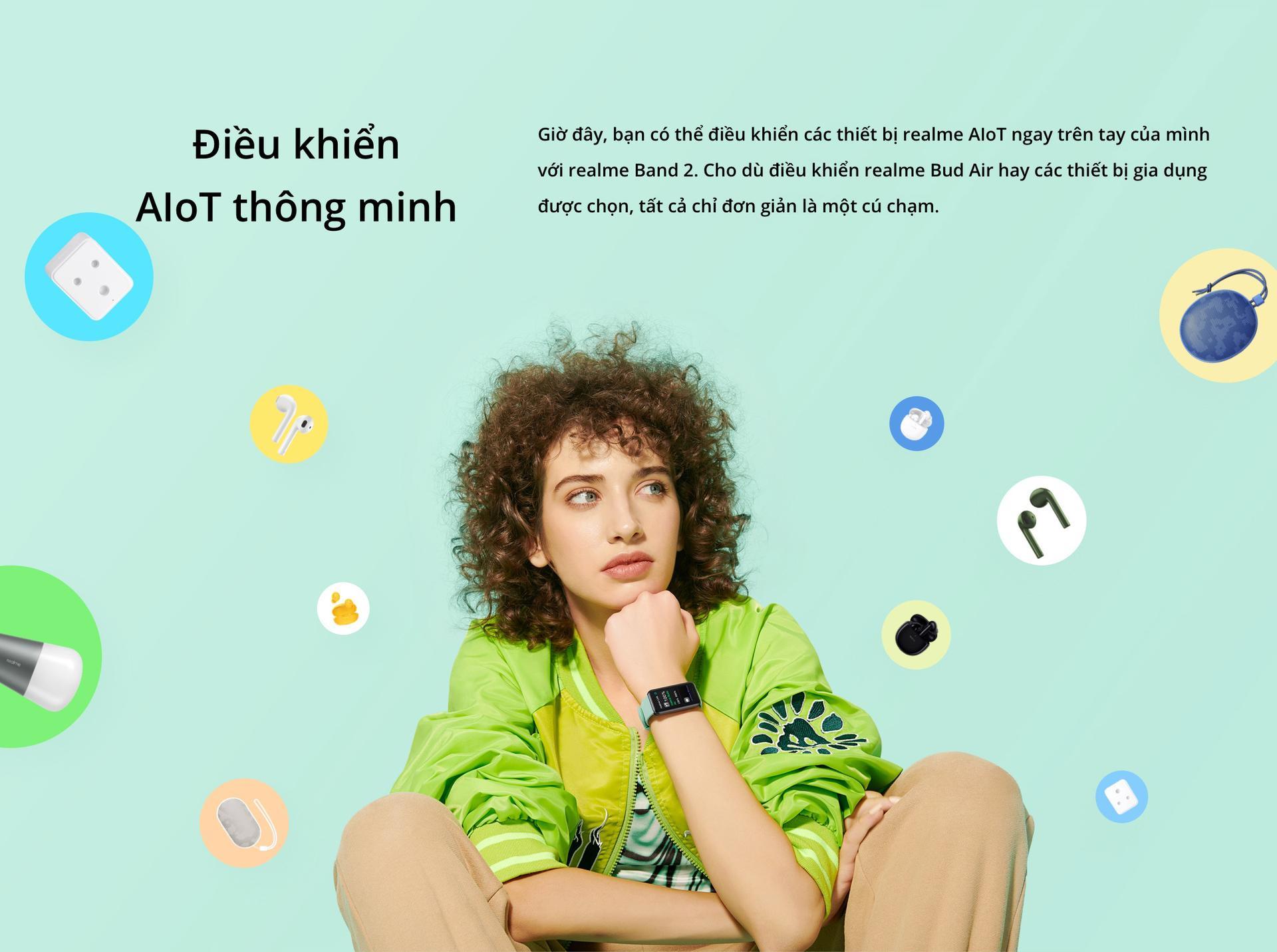 Đặc biệt, thông qua nền tảng thông minh realme Link, khách hàng sẽ dễ dàng kết nối realme Band 2 với các thiết bị trong hệ sinh thái AIoT của realme như tai nghe, loa, camera hay liên kết với smartphone để điều khiển chơi nhạc và chụp ảnh.
