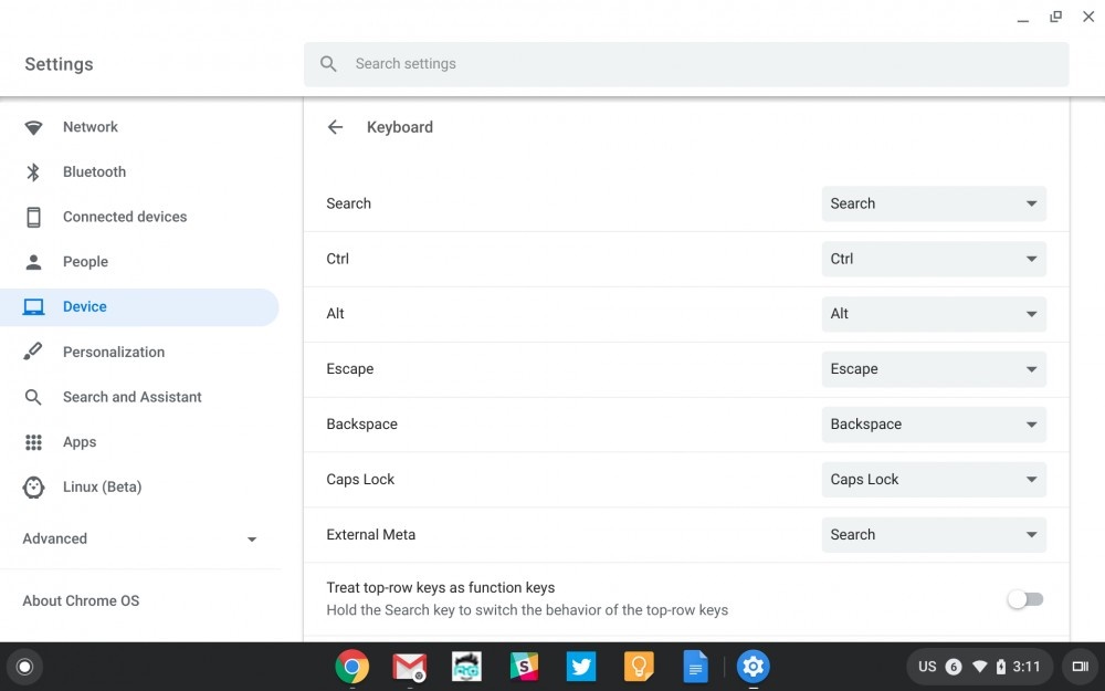 Hiệu chỉnh các phím điều khiển trong Chrome OS