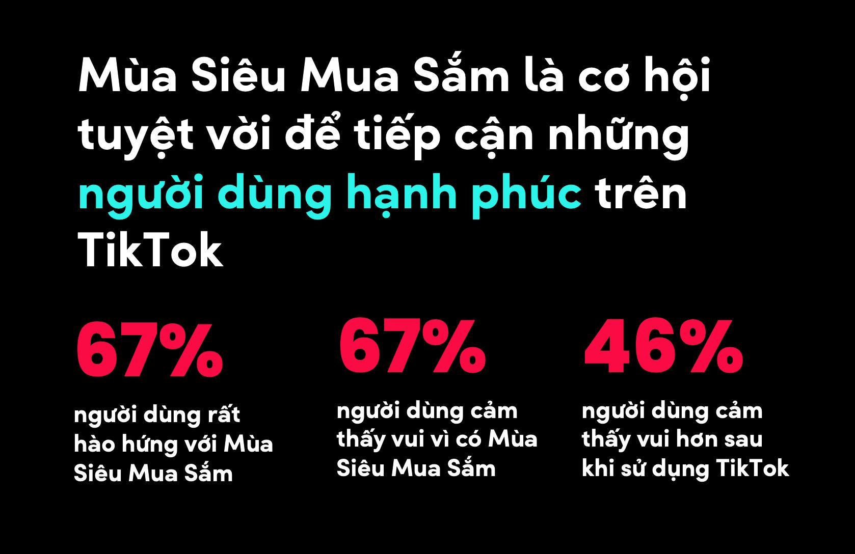 Cộng đồng người dùng TikTok hiện vẫn đang tăng trưởng liên tục, ngày càng dành nhiều thời gian trên nền tảng và hứng thú với các nội dung tiếp thị sáng tạo trong dịp lễ hội mua sắm. Điều này biến TikTok trở thành điểm đến chiến lược nơi doanh nghiệp gặp gỡ người tiêu dùng. TikTok mang đến cơ hội cho doanh nghiệp để cùng sáng tạo với cộng đồng, giúp họ tạo ra siêu khoảnh khắc của riêng mình trong Mùa Siêu Mua Sắm năm nay và đạt được hiệu quả kinh doanh.