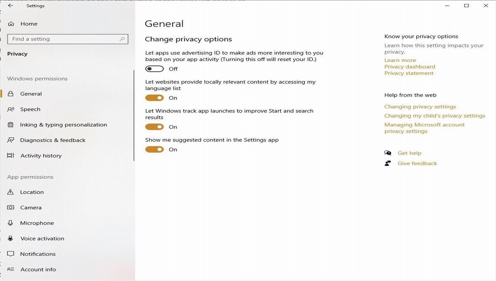 Mối quan tâm hàng đầu của đa số người dùng về quyền riêng tư là những loại dữ liệu nào của họ bị thu thập trong quá trình duyệt web. Các thông tin đó tạo ra hồ sơ về sở thích cá nhân và được nhiều công ty sử dụng để định hình mục tiêu quảng cáo. Mỗi tài khoản Windows 10 đều có ID quảng cáo riêng để thu thập thông tin về người dùng trong quá trình duyệt web và cả khi sử dụng các ứng dụng khác.