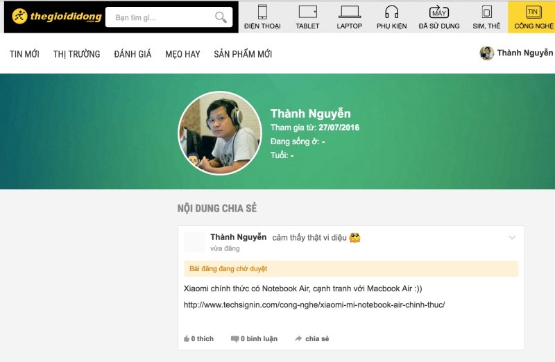 Từ một bài viết mới đây trên ICTnews, Techsign.in đã thử sử dụng trang cộng đồng của website Thế giới di động.